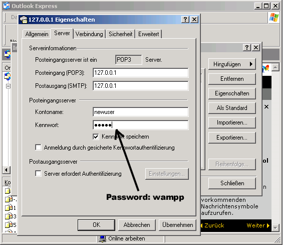- one test user called "newuser" (newuser@localhost) with the Password = wampp;